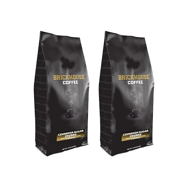 2-pack of Brickhouse Cinnamon Sugar Churro Ground Coffee. Sweet, spiced, and crafted with 100% Arabica beans for a bold churro-inspired flavor.