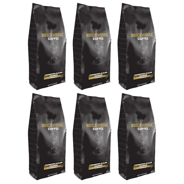 Stock up on the delicious flavor of Brickhouse Cinnamon Sugar Churro Flavored Ground Coffee with this convenient 6-pack. Each bag contains 12oz of medium roast ground coffee, bursting with warm cinnamon and sugar flavor that tastes like a freshly made churro.