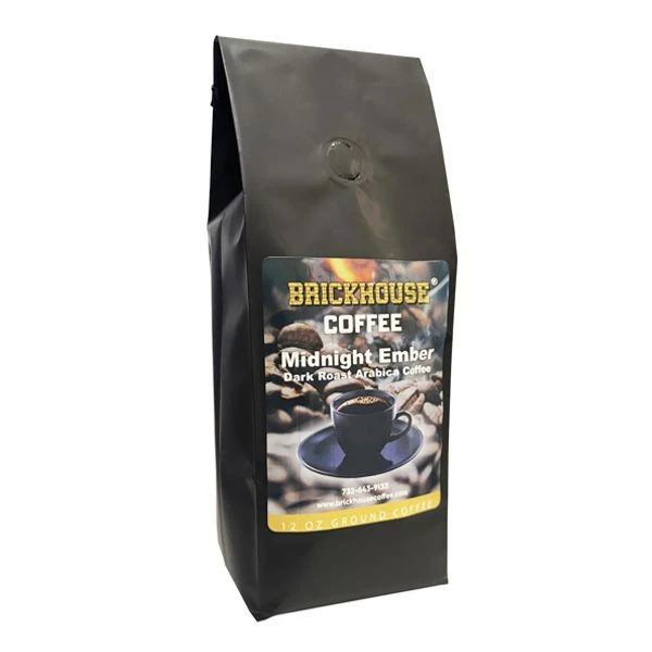 Brickhouse Coffee Midnight Ember Dark Roast is our boldest and darkest coffee yet. Made from 100% Arabica beans, this full-bodied roast offers an intense, smoky profile with deep notes of dark chocolate, molasses, and burnt cookie, followed by a smooth, sweet finish. Roasted in small batches to ensure peak freshness, this 12oz ground coffee is perfect for those who crave a strong and rich coffee experience.
