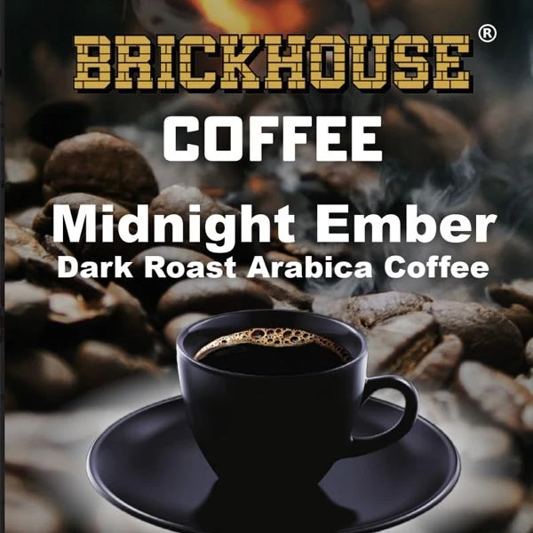 Bold and smoky, Brickhouse Coffee Midnight Ember Dark Roast is made from 100% Arabica beans, delivering a rich, full-bodied experience with notes of dark chocolate, molasses, and burnt cookie, finishing smooth and sweet!